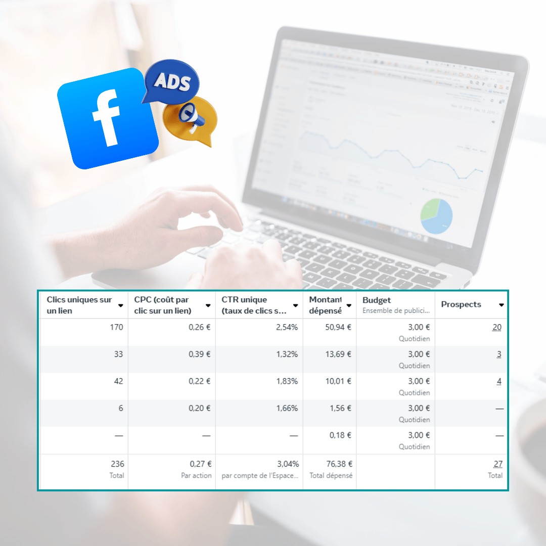 Pas besoin de dépenser des milliers d’euros. Même avec un petit budget, tu peux générer des prospects si tes campagnes sont bien construites et pilotées.